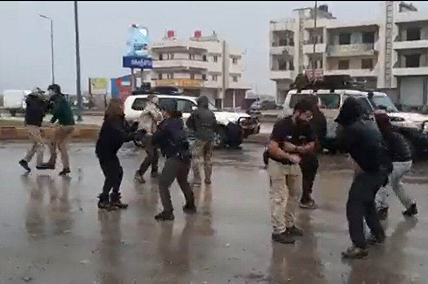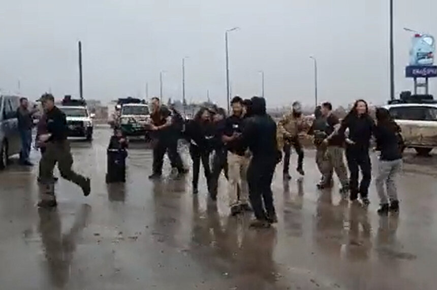 Tüm bunların yaşandığı bölgeden skandal bir görüntü daha geldi. Terör örgütü PKK’nın Suriye kolu YPG’ye bağlı teröristler ile onları eğiten Amerikalı paralı askerler yağmur altında dans ederken ki görüntüleri ortaya çıktı.