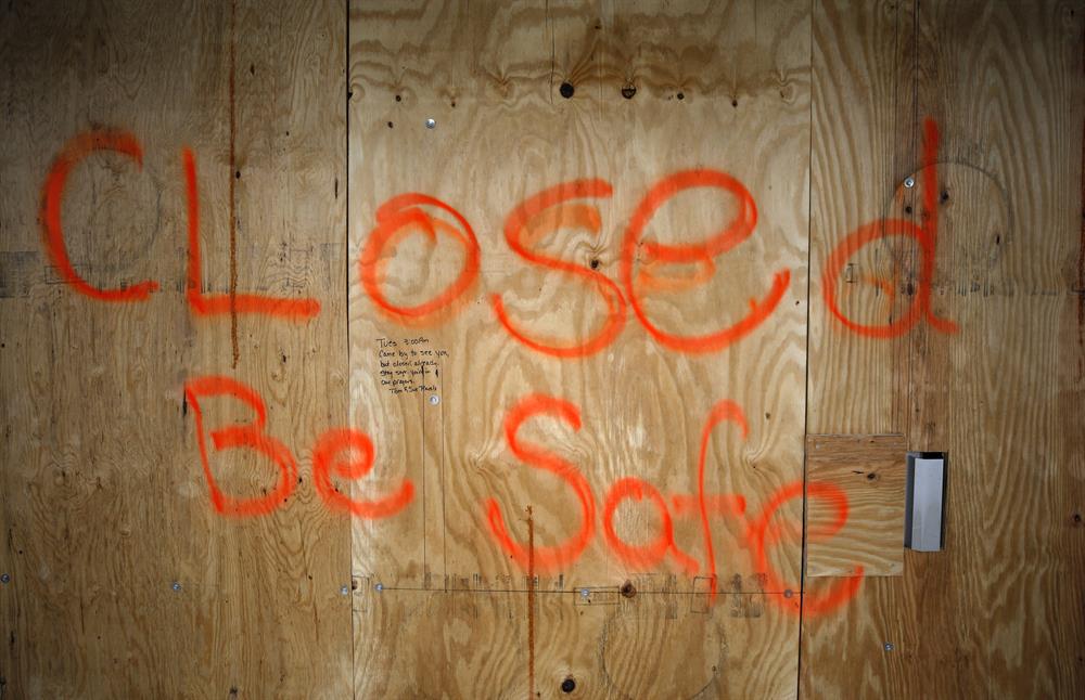 Ayrıca bölge sakinleri, kasırga için önlem olarak cam ve kapılarını kapattıkları tahta levhalara notlar yazdı. Notlar arasında, "Kapalı. Güvende kalın" yazısı yer alıyor.