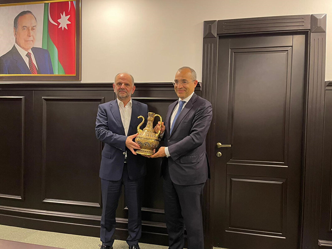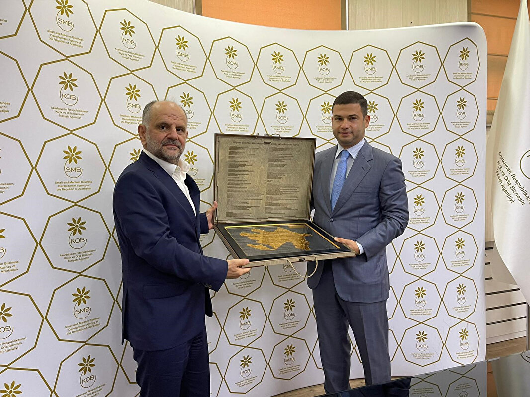 Albayrak Holding yönetim kurulu üyeleri Mustafa Albayrak ve İbrahim Karaca, beraberindeki heyetle birlikte Azerbaycan’ın başkenti Bakü'de, Küçük ve Orta Ölçekli İşletmelerin Geliştirme Ajansı Başkanı Orhan Memmedov'la bir görüşme gerçekleştirdi.
