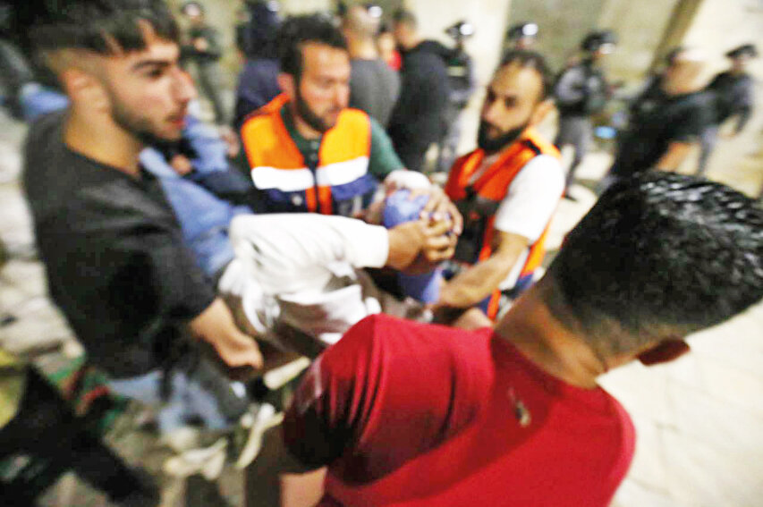 Yüzlerce polisle Mescid-i Aksa’yı basan işgalciler, Kıble Mescidi’nde yatsı namazını kılan cemaate ses ve gaz bombalarıyla saldırdı. Plastik mermilerin de kullanıldı.