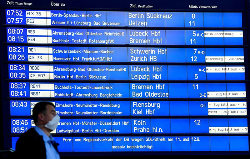 Alman Makinistler Sendikası ile Alman Demiryolları arasında süren toplu iş sözleşmesi görüşmelerinden sonuç çıkmaması üzerine makinistler 48 saat sürecek grevi başlattı. Zam ve prim talebinde bulunan ve görüşmelerden istediklerini alamayan makinistler,in13 Ağustos'a kadar sürecek grev kararının ardından yolcular istasyonda beklemek zorunda kaldı. Hafta boyunca ülke çapında tüm demir yolu ulaşımının aksaması beklenirken, GDL Başkanı Claus Weselsky, dün yaptığı açıklamada, "İnsanlarımız herkes gibi çalıştı. Bu yüzden yeterli bir ücret artışına hakları var. Ülkemizdeki demir yolu işçileri usanmış durumda." ifadesini kullandı.