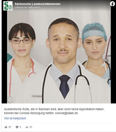 Artan vaka sayısı ve yetersiz sağlık hizmetleriyle koronavirüsle mücadele etmeye çalışan Almanya daha önce lisans vermediği mülteci doktorları göreve çağırıyor. Facebook üzerinden verilen ilanda "Çalışmak için lisansı olmayan göçmen doktorlar, salgına karşı yardımcı olabilir" ifadesi kullanıldı.