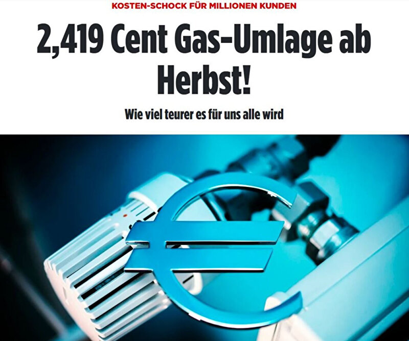 Rusya'nın vanaları kısmasının ardından Avrupa'da enerji krizi nedeniyle panik yaşanıyor. Kara kışa hazırlanan Almanya, doğalgaza zam kararı aldı. Berlin yönetimi, artan maliyetlerin vatandaşlara yansıtılmasına onay verdi. Almanya basınından Bild, gelişmeyi "Milyonlarca müşteri için maliyet şoku" başlığıyla duyurdu. Zamlı fiyatlar, hane halklarına ve sanayiye 1 Ekim'den itibaren yansıtılacak.