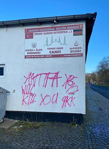 Güney Kıbrıs'ta yer alan bir camiye yönelik saldırının ardından bir çirkin saldırı da Almanya’nın Kassel kentinde yaşandı. PKK terör örgütü mensupları, Muhsin Yazıcıoğlu Kültür Merkezi ile Yunus Emre Camisi’nin duvarına hakaret ve tehdit içerikli yazı yazdı. Kassel polisi olayla ilgili soruşturma başlattı.