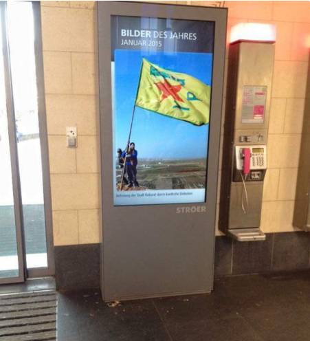 Her yıl dünyanın farklı bölgelerinden ilginç olan fotoğrafları seçerek, milyonlarca insanın kullandığı tren garlarına bulunan billboardlarda sergileyen Infoscreen adlı kuruluşun Almanya'daki bir çok tren garında PKK'nın Suriye kolu terör örgütü YPG'nin propagandasını yaptığı öne sürüldü.