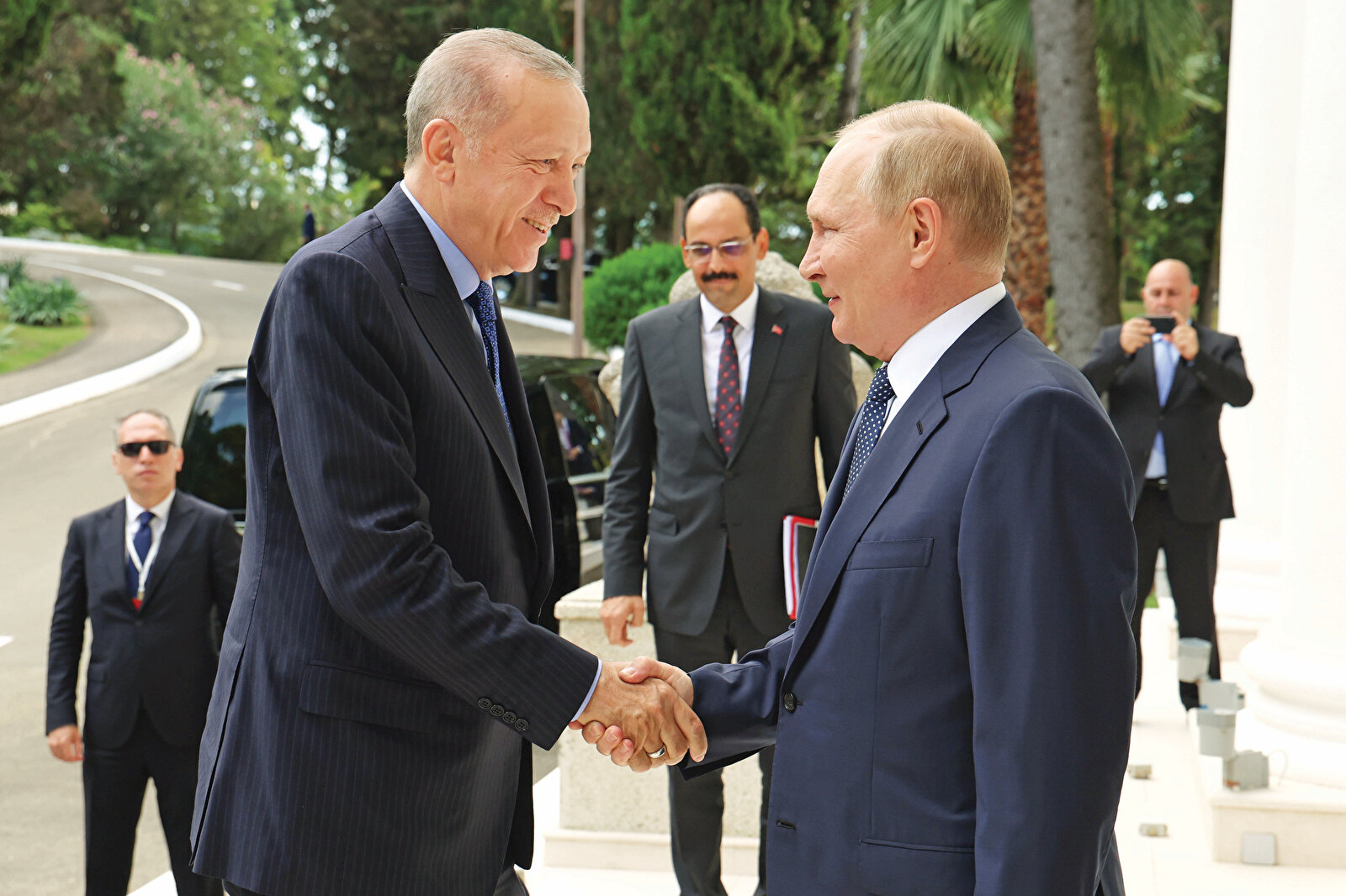 Cumhurbaşkanı Recep Tayyip Erdoğan, Rusya’nın Soçi kentinde Rusya Devlet Başkanı Vladimir Putin ile Rus Sanatoryum’da görüştü. Dünyanın gözü de Soçi’de oldu. Erdoğan, Putin’e teşekkür ederken, Tahran ziyaretinin ardından 17 gün aradan sonra tekrar bir araya gelişleri sebebiyle memnuniyet duyduğunu ifade etti. Putin ise, “Türkiye Suriye’deki durunun normalleşmesine ciddi katkı sağlıyor. BM ve Türkiye sayesinde tahıl sevkiyatı başladı. Avrupa’daki tüketiciler Türkiye’ye minnettar olmalı” ifadelerini kullandı.