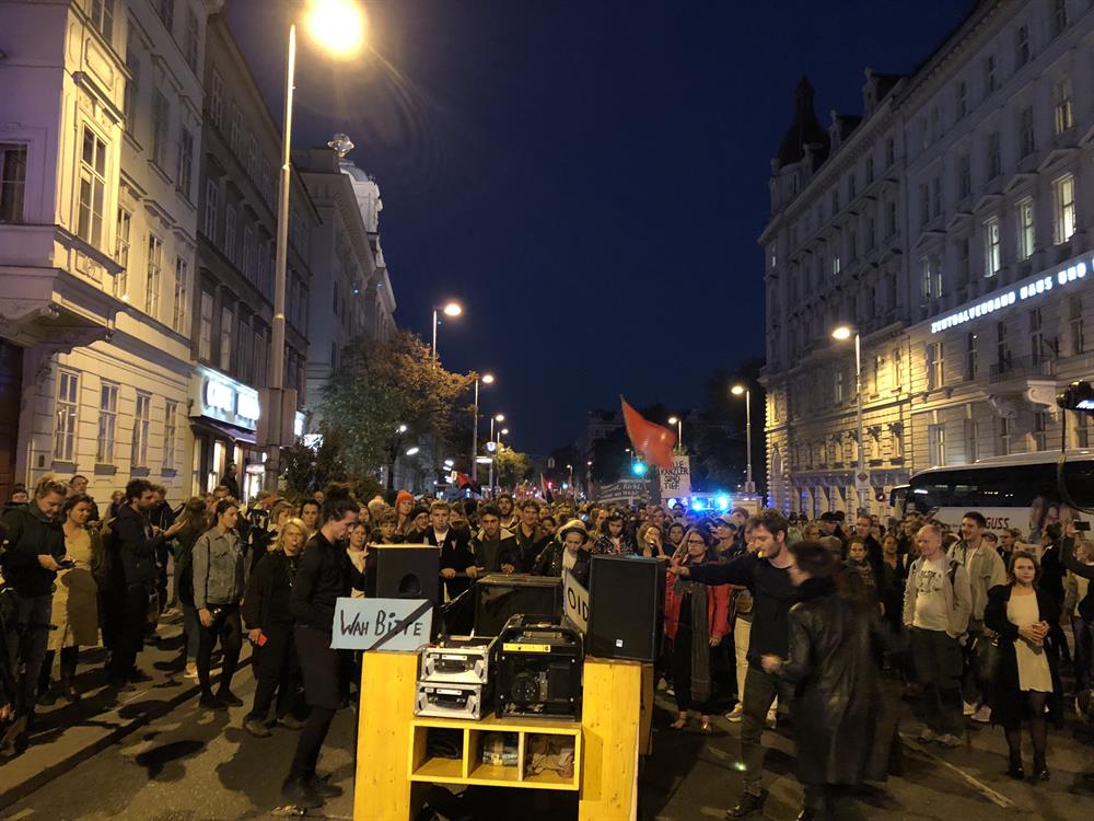 Çok sayıda gazeteci, sanatçı ve yazarın konuşma yaptığı eylemde, Avusturya Halk Partisi (ÖVP) ve aşırı sağcı Özgürlük Partisi (FPÖ) koalisyon hükümetinin, Müslüman, göçmen ve yabancı karşıtı politikalarının yanı sıra kimi medya kuruluşlarına yönelik sansür girişimine tepki gösterildi.