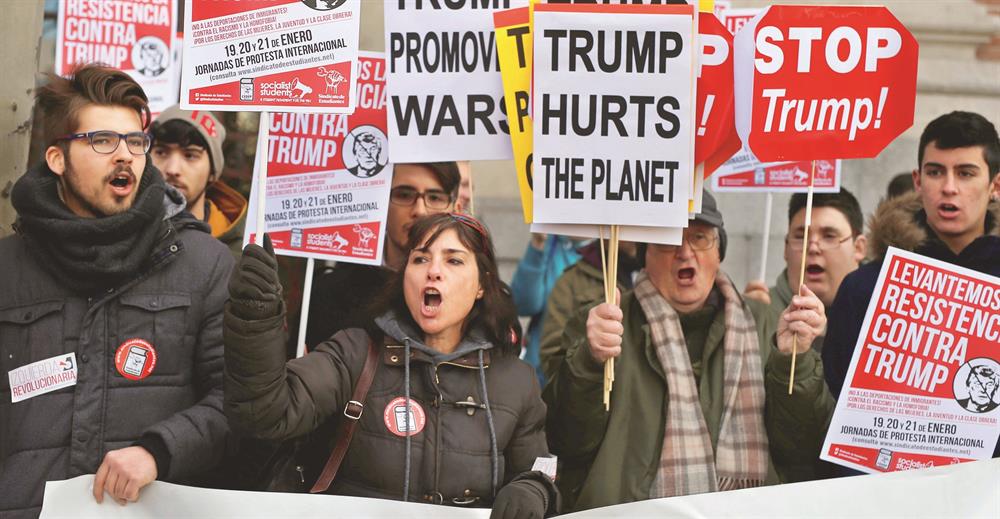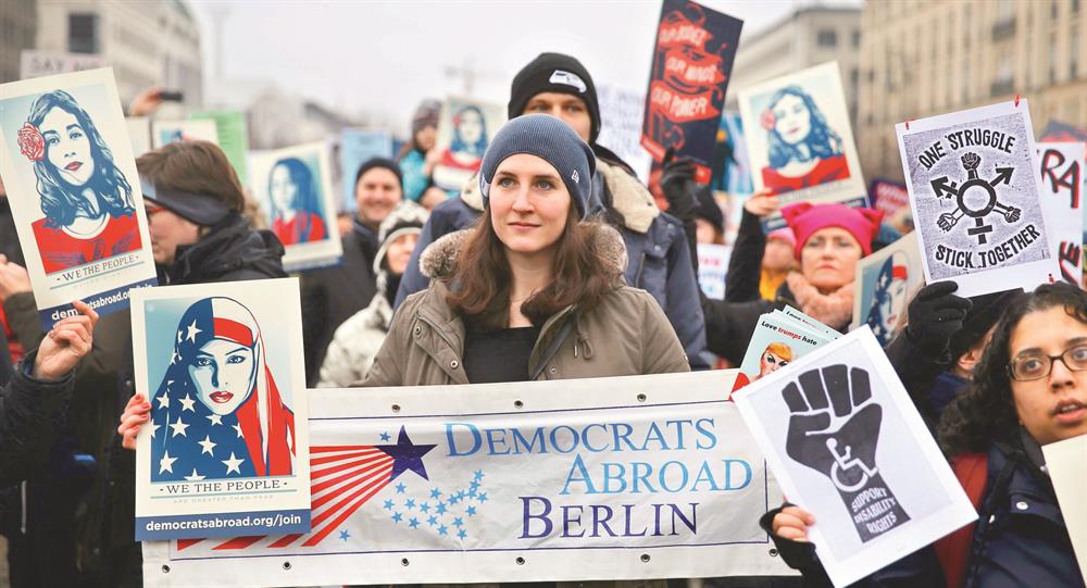 ABD Başkanı Donald Trump'a karşı ülkede ve dünya genelinde 'kız kardeş yürüyüşü" adlı eylemler düzenleniyor. ABD'nin başkenti Washington'da, Kongre Binası'ndan Beyaz Saray'a yürüyüşe onbinlerce kişi katıldı. Göstericiler, "daha az korku daha fazla sevgi", "gelecek kadındır" yazılı dövizler taşıdı. New York'ta on binlerce kadın Donald Trump'ı protesto etmek için 5. caddedeki Trump Tower'a yürüdü. New York polisi, Trump'a ait iki işyerine çıkan yolları kum yüklü 20'şer tonluk çöp kamyonlarıyla kapattı.