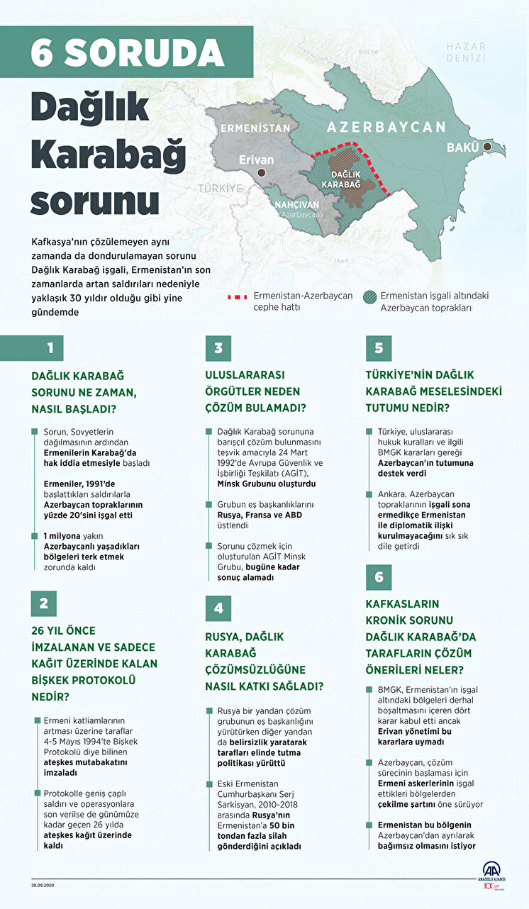 Azerbaycan ordusu, topraklarını Ermenistan işgalinden kurtarmak için başlattığı operasyonlara devam ederken, Dağlık Karabağ’a başlatılan kara harekatı kapsamında çatışmalarda Ağdere ilinin Madagiz bölgesinde bazı stratejik tepelerde kontrolün sağlandığı duyuruldu.