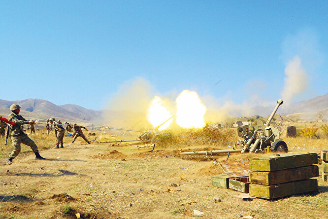 - Azerbaycan ordusunun Şuşa’ya ilerleyişinin yavaşlığının, dağlık ve sık orman yapısından kaynaklandığı değerlendiriliyor. Bununla beraber Azerbaycan ordusu karşısında adım adım çekilmek zorunda kalan Ermenistan’ın bu bölgede, PKK’lı teröristlerden büyük taktik destek aldığı belirtiliyor.Türkiye’nin Güneydoğu bölgesindeki sarp arazi yapısına benzer konumuyla Karabağ’da da PKK, Türkiye’de yaptığı gibi ormanları yakıyor, vur-kaç taktiği uyguluyor. Azerbaycan ordusunu durdurmak için terör örgütlerinin sistemlerine başvuran Ermenistan, yardım çağrılarına da yanıt alamıyor.Azerbaycan uçaklarının Ermeni mevzilerini vurmaya başlaması, Ermenistan’ın bölgede hava savunmasının kalmadığını ortaya koyarken, Ermeni ordusu uzaktan top atışlarıyla sivilleri hedef alan saldırılar dışında bölgede hareket edemez durumda.