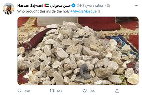 İşgalci İsrail’in normalleşme sürecine girdiği ülkelerden biri olan BAE’de, Mescid-i Aksa’ya saldırı başlatan İsrail güçlerine destek paylaşımları yapıldı. BAE’li hesaplar, Mescid-i Aksa’yı savaş alanına çeviren İsrail güçleri yerine, saldırılara direnen Filistinli Müslümanları suçladı.
