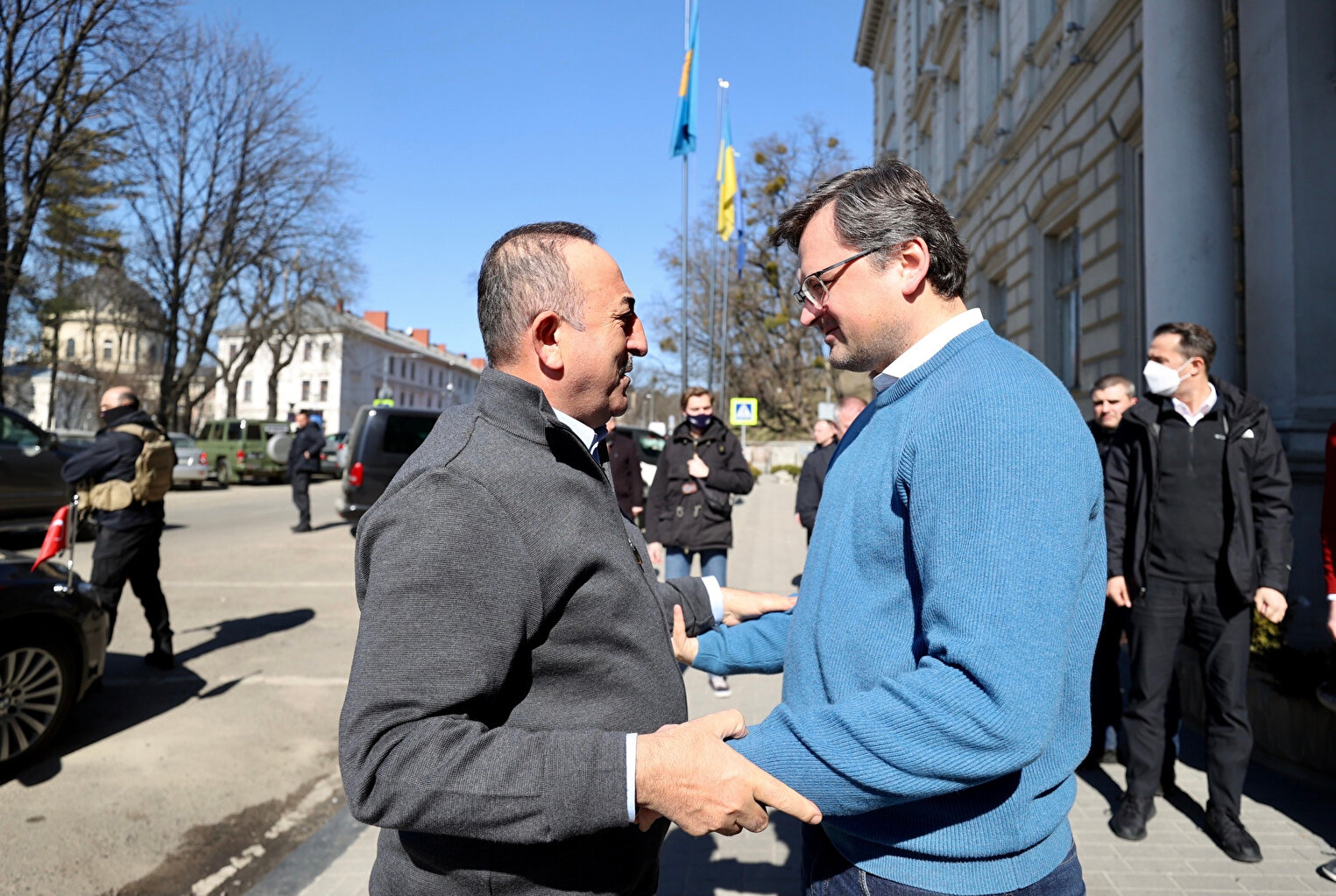 - Çavuşoğlu, Ukrayna'daki Kırım Tatar Koordinasyon Merkezini de ziyaret edeceklerini belirterek, Mariupol bölgesinde çatışmaları devam ettiği için orada yaşayan Türk vatandaşları ve masum sivilleri ayırt etmeksizin tahliyesini yapılmasının aciliyet olduğunu söyledi.