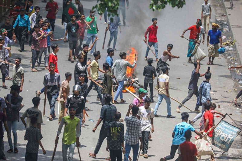 Bangladeş'te Bağımsızlık Savaşı'na katılanların ailelerine kamuda ayrılan kontenjan oranına tepki olarak başlayan gösteriler, hükümet karşıtı protestolara dönüşürken son üç haftada yüzlerce kişi hayatını kaybetti veya yaralandı, yaklaşık 10 bin kişi gözaltına alındı.