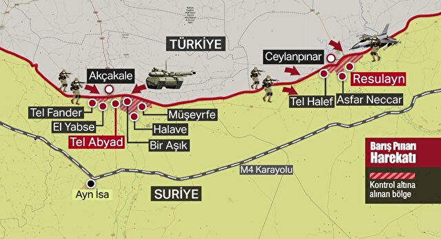 Türkiye'nin Fırat'ın doğusunda YPG/PKK ve DAEŞ terör örgütlerine karşı yürüttüğü Barış Pınarı Harekatı devam ediyor.