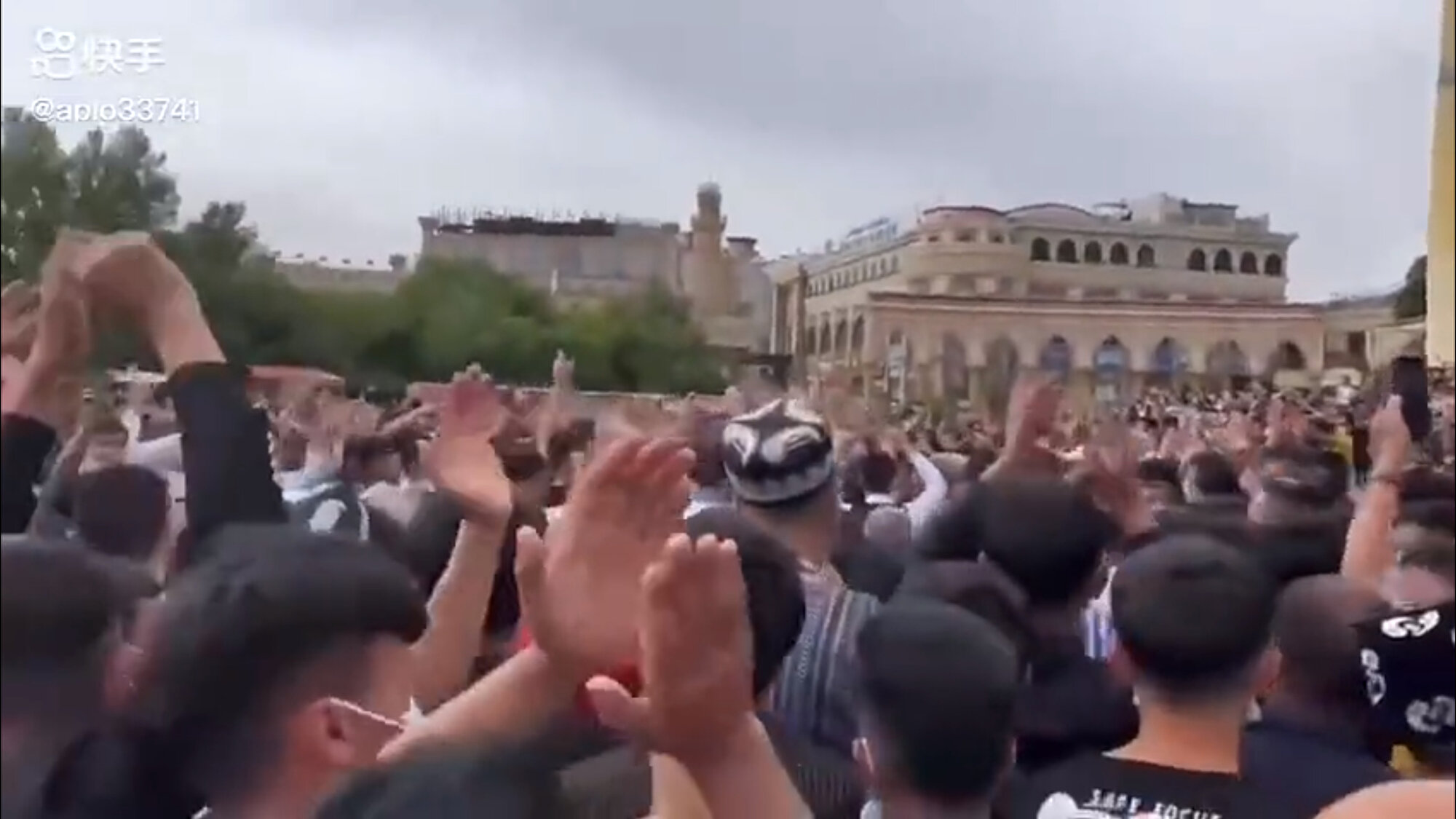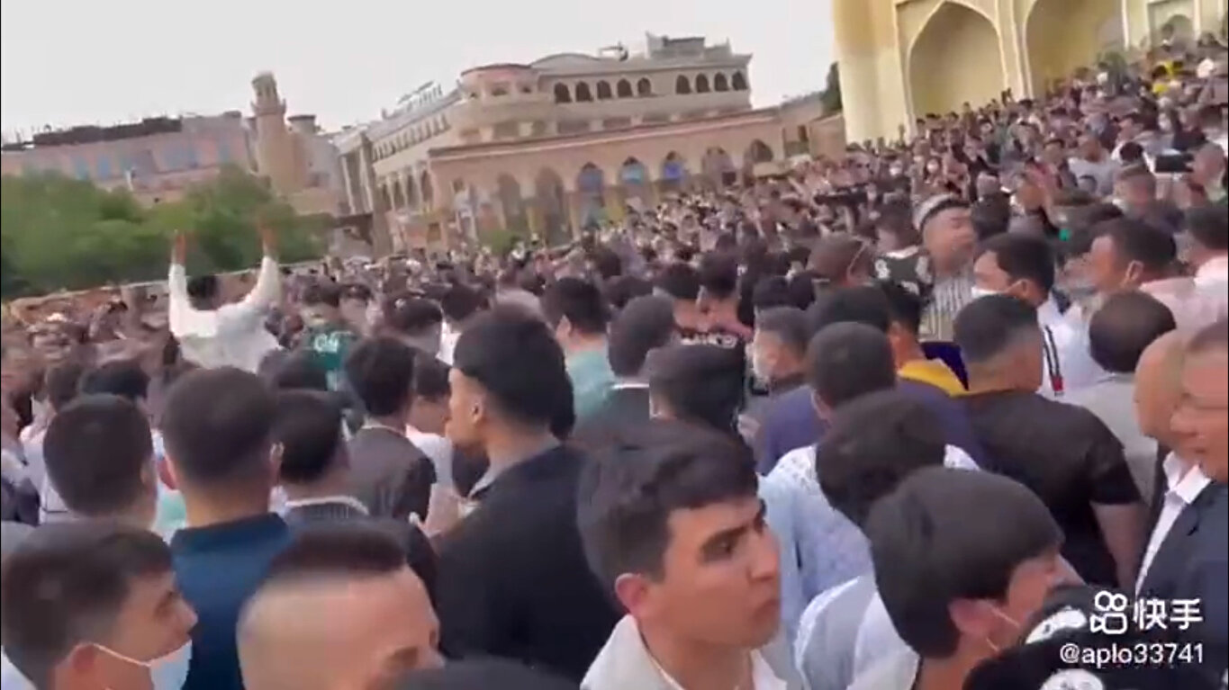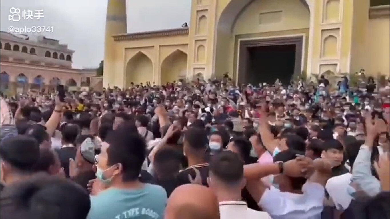 Çin yönetiminin yasaklaması sonrası 6 yıldır bayram namazı kılınamayan Doğu Türkistan'da bu yıl Kaskar İydgah Camii'nde bayram namazı kılındı.