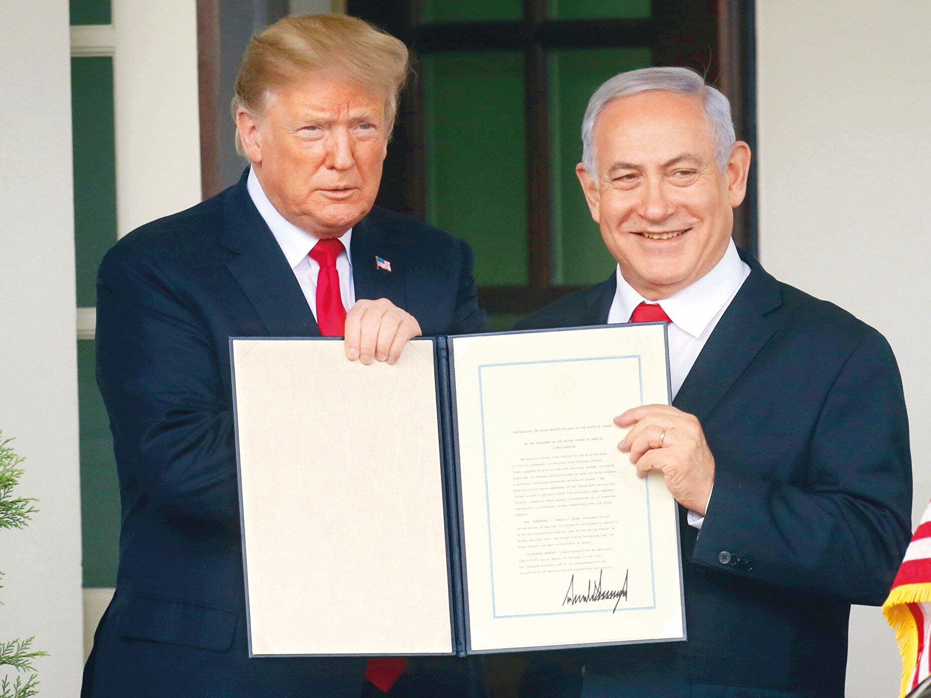 - ABD ve İsrail yönetimlerinin uluslararası hukuka aykırı Golan adımı, küresel tepkiye neden oldu. İki ülke bir kez daha uluslararası alanda yalnız kaldı. Birleşmiş Milletler, ‘’Golan Tepeleri’nin statüsü değişmedi” açıklamasını yaparken, Avrupa Birliği (AB) sözcülüğünden, “Golan Tepeleri dahil İsrail’in 1967’den beri işgalinde olan topraklar üzerindeki egemenliğini tanımıyoruz” açıklamasında bulunuldu. Kremlin Sözcüsü Dimitriy Peskov, ABD’nin Golan Tepeleri’ne ilişkin kararını eleştirerek “Olumsuz sonuçlara neden olacak bu kararı üzüntüyle karşılıyoruz. Washington, uluslararası hukuku çiğneyen yeni bir adım daha atmıştır” dedi. Arap Birliği tarafından yapılan yazılı açıklamada, “Söz konusu karar şekil ve konu bakımından geçersizdir, batıldır” ifadelerine yer verildi. İngiltere ve Kanada Dışişleri Bakanlıkları, Golan Tepeleri’ni İsrail’in işgali altındaki toprak olarak gördüklerini ve İsrail’in ilhakını tanımayı planlamadıklarını duyurdu. Suudi Arabistan’dan yapılan açıklamada, söz konusu adımın Ortadoğu’daki barış sürecinin yanı sıra bölgenin güvenliği ve istikrarı üzerinde de ciddi olumsuz etkileri olacağı uyarısında bulundu.