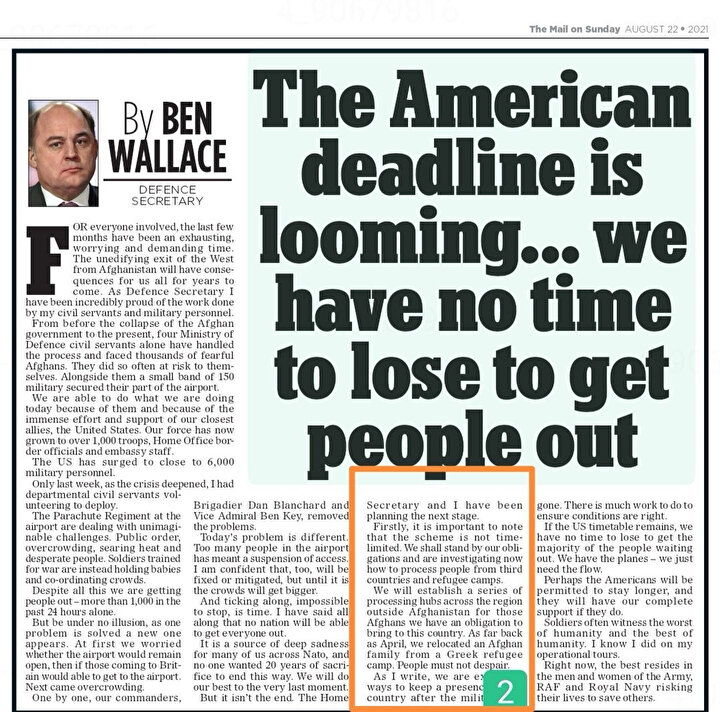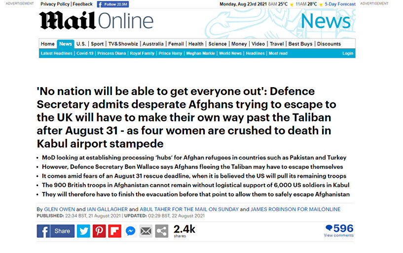 BBC Türkçe, Daily Mail gazetesini kaynak göstererek, İngiltere'nin Afgan sığınmacılar için Türkiye’de iltica merkezi kurmayı planladığına yönelik haber servis etmişti. İngiliz medya kuruluşları, bu iddialarını İngiltere Savunma Bakanı Ben Wallace'ye dayandırsa da, İngiliz bakanın makalesinde Türkiye'nin adı dahi geçmiyor. İki kuruluş da Türkiye'nin adını haberlerine ekleyerek algı çalışması gerçekleştirdi.