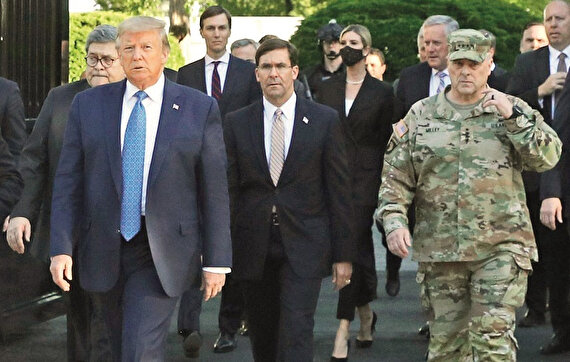 - ABD Genelkurmay Başkanı Org. Mark Milley de, Washington DC’deki protestolar sırasında Trump’ın arkasında kamuflaj üniformasıyla yürürken fotoğraf karesine girmesinin yanlış olduğunu söyledi. ABD Ulusal Savunma Üniversitesinin mezuniyet töreninde konuşan Milley, tartışmalara konu olan “kamuflajlı fotoğraf” meselesine de değindi. Milley, “Çoğunuz geçen hafta Lafayette Meydanı’nda çekilen bir fotoğrafımın sonuçlarını gördü. Bu, askerin sivil toplum içindeki rolüne ilişkin ulusal bir tartışma başlattı. Orada olmamalıydım. O ortamda o anda olmam, ordunun iç siyasete karıştığına yönelik bir algı oluşturdu. Görevli bir askeri yetkili olarak orada bulunmamın hata olduğunu öğrendim ve umarım hepimiz bundan ders çıkarırız” diye konuştu.