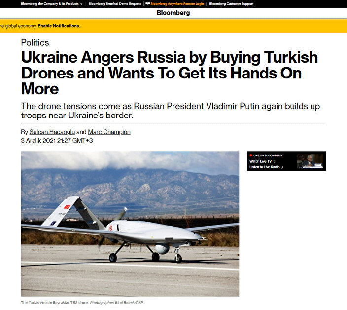 Bloomberg "Ukrayna, Türk İHA'ları Alarak Rusya'yı Kızdırdı ve Daha Fazlasına Sahip Olmak İstiyor" başlığıyla yayımladığı bir haberde dikkat çeken bir iddiada bulundu.