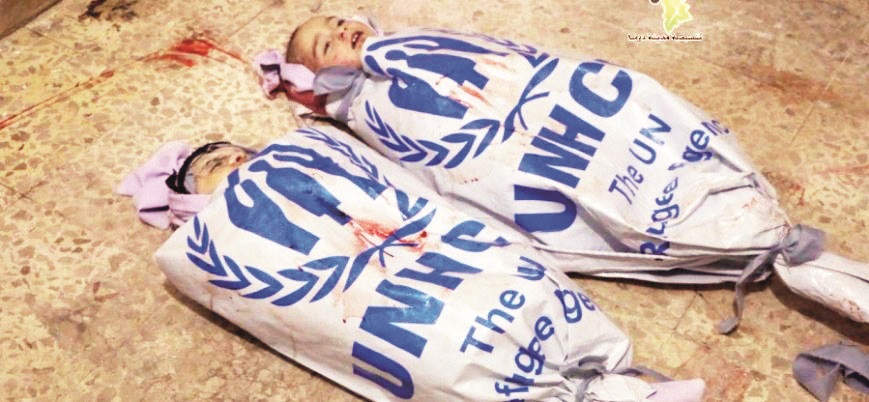BM Mülteciler Yüksek Komiserliği’nin logosu bulunan kumaşlar, çocuklara kefen yapılmıştı. BM Güvenlik Kurulu, geçtiğimiz Şubat ayında, Suriye’de 30 günlük insani ateşkes ve kuşatma bölgelerine insani yardım ulaştırılmasını ön gören 2401 sayılı uluslararası karar tasarısını onaylamıştı. BM tarafından, Doğu Guta’ya dair yapılan açıklamada, bölgedeki durumun kelimelerle ifade edilemeyecek kadar kötü olduğunu belirtilmişti. BM’ye ait yardım konvoyu, Esad’ın saldırılarının sürmesi nedeniyle saatlerce bekledikten sonra Doğu Guta’nın Duma ilçesine girebildi. Rejim güçleri, ilaçlar başta olmak üzere konvoydaki yardım malzemelerinin yüzde 70’ine el koydu.