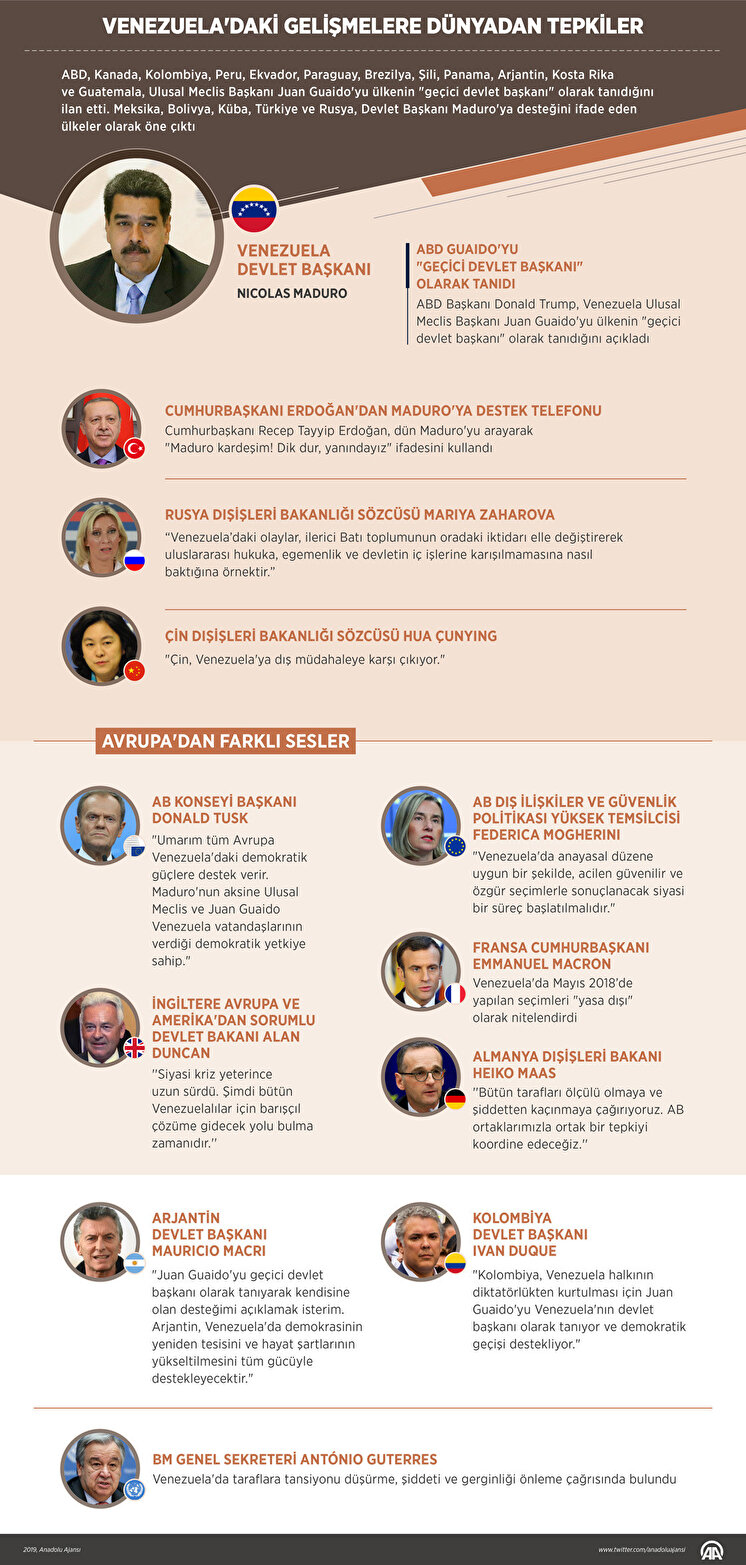 Ulusal Meclis Başkanı Juan Guaido'nun kendi kendine "başkanlık" için yemin etmesinin yasalara aykırı olduğunun altını çizen Maduro, sözlerini şöyle sürdürdü: