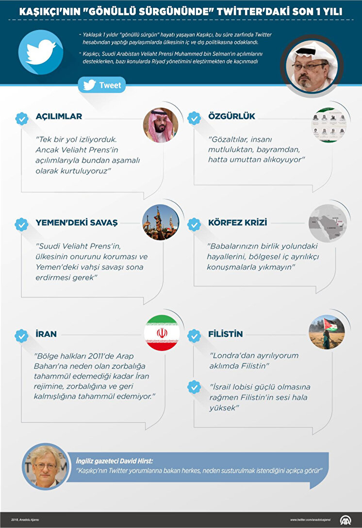 Suudi gazeteci Cemal Kaşıkçı'dan, 2 Ekim'de Suudi Arabistan'ın İstanbul Başkonsolosluğu'na girdikten sonra haber alınamamıştı. Suudi Arabistan yönetimi 18 gün sonra gazeteci Kaşıkçı'nın konsoloslukta öldürüldüğünü kabul etmek zorunda kalmıştı.