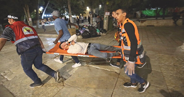 İsrail polisinin işgal altındaki Doğu Kudüs’te bulunan Mescid-i Aksa’daki cemaate müdahalesinde AA Ortadoğu Editörü Turgut Alp Boyraz ayağından, foto muhabiri Alkharouf sırtından, kameraman Rumeyle ise sağ bacağından yaralandı.