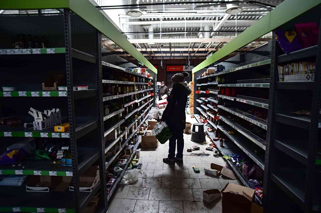 Kentte sıkı önlemler alan Ukrayna güçleri yağma olaylarına müsaade etmezken, siviller çatışmalarda kısmen hasar alan bazı marketlere gelerek bozulmamış gıda ve temel ihtiyaç ürünlerini aradı.