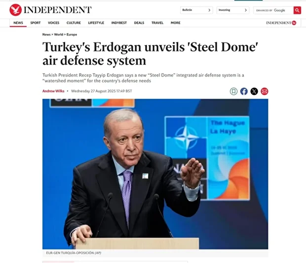 İngiliz Independent gazetesi, "Erdoğan, Çelik Kubbe hava savunma sistemini tanıttı" başlığı ile haberi servis etti. Gazete Çelik Kubbe'nin savunma ihtiyaçları açısından dönüm noktası olduğu vurgusunu öne çıkardı.