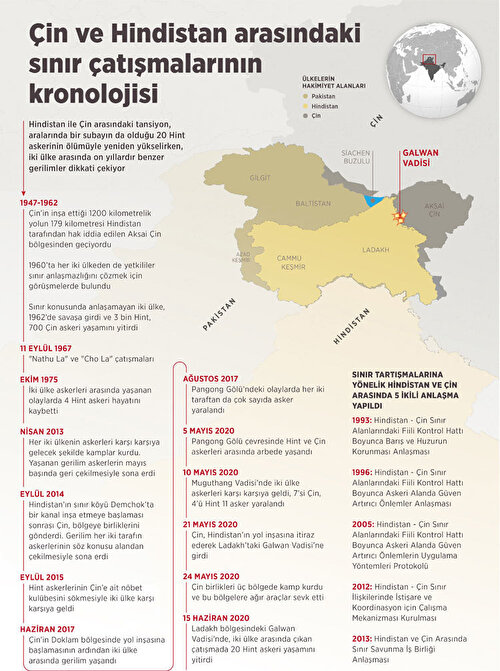 Çin ve Hindistan sınırındaki egemenlik tartışmaları askeri gerilime dönüştü. Onlarca Hint ve Çin askerinin ölmesi ile sonuçlanan kriz sonrası, her iki ülkenin Himalaya Dağları'nın batısındaki Ladakh bölgesine çok sayıda mühimmat ve birlik sevk etmesi kaygıları da arttırdı.