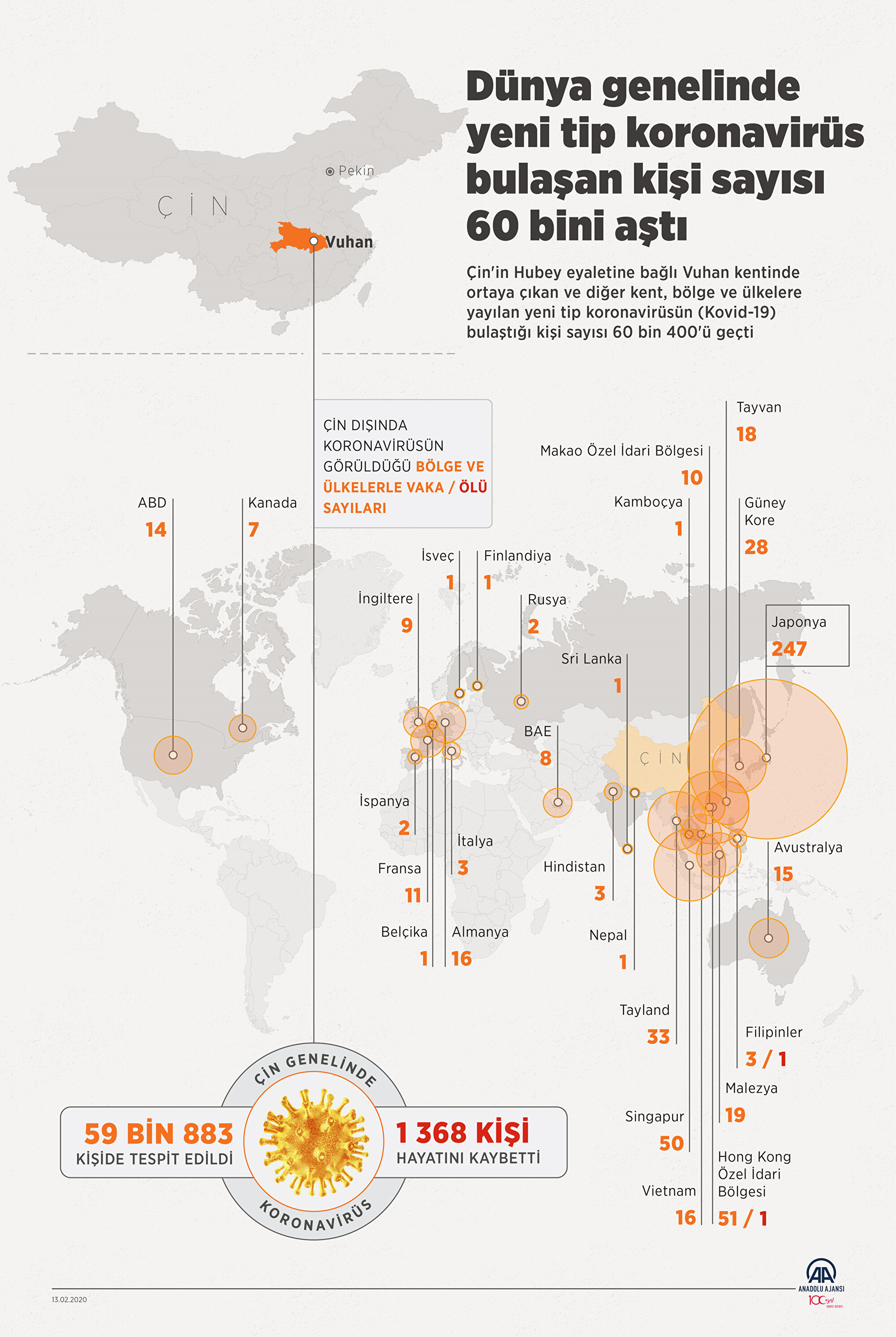 - Hubey eyaletine bağlı Vuhan kentinde 12 Aralık 2019'da ortaya çıkan yeni tip koronavirüs salgını nedeniyle aralarında Türkiye'nin de bulunduğu birçok ülke, Çin'de mahsur kalan vatandaşlarının tahliyesini gerçekleştirmişti.
