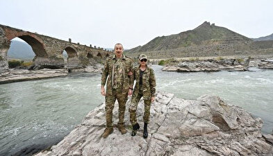 Azerbaycan Cumhurbaşkanı İlham Aliyev ve eşi Mehriban Aliyeva, Ermenistan işgalinden kurtarılan Fuzuli ve Cebrail’i 27 yıl sonra ilk kez ziyaret etti. Aliyev, işgalden kurtarılan şehirlerden birinde Azerbaycan bayrağını öperek, bayrağı göndere çekti.