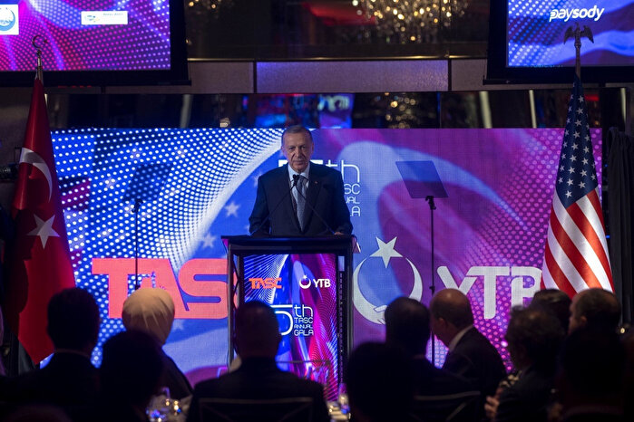 Cumhurbaşkanı Recep Tayyip Erdoğan, Rockefeller Plaza'da düzenlenen Türk Amerikan Ulusal Yönlendirme Komitesi (TASC) yemeğinde yaptığı konuşmasında, "Geldiğimiz noktada, Türk-Amerikan toplumunun belirli bir olgunluğa eriştiğini müşahede ediyoruz. Sahip olduğunuz ortak değerler etrafında birleştiğiniz sürece, üstesinden gelemeyeceğiniz zorluk yoktur." dedi.