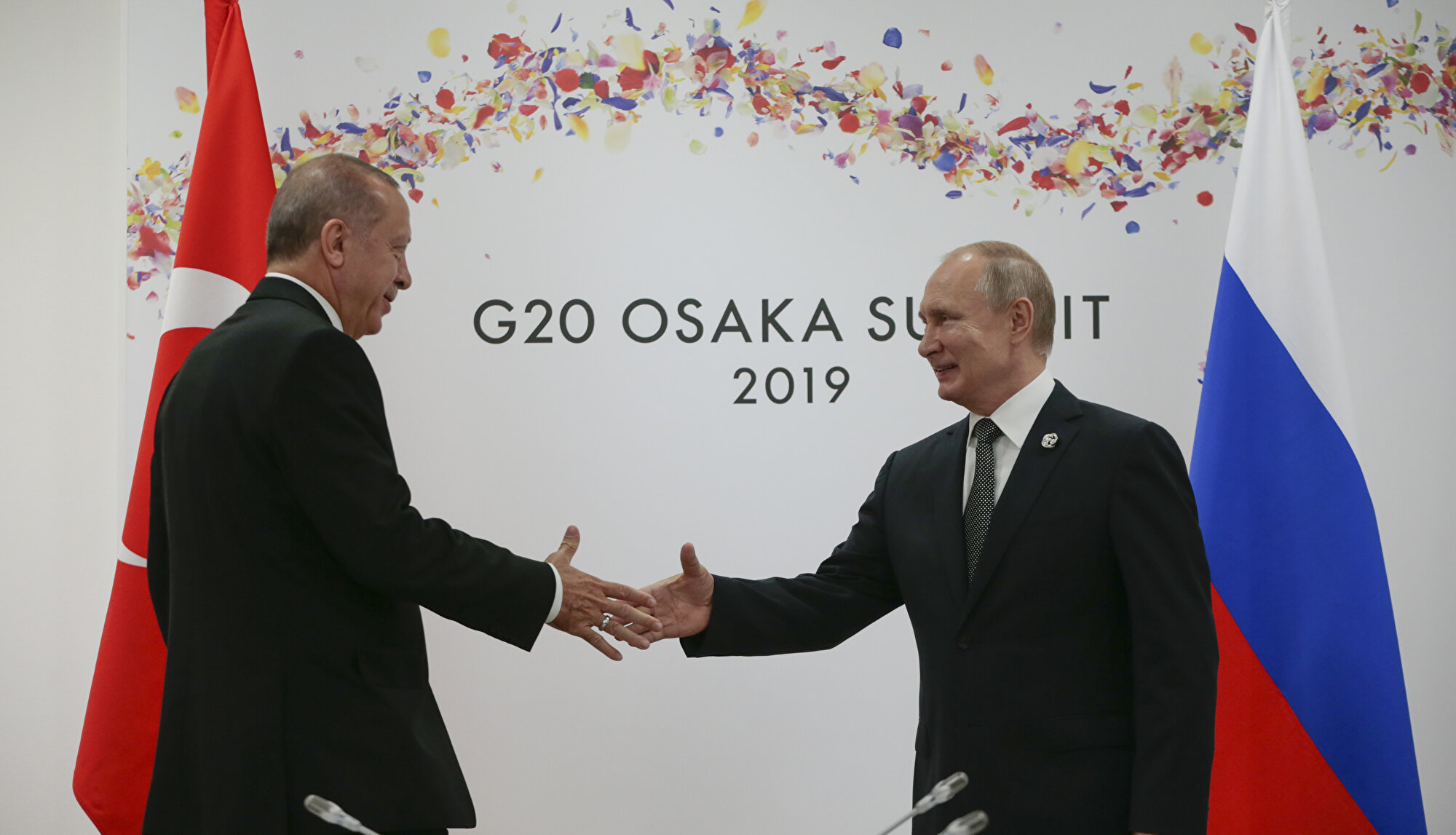 Cumhurbaşkanı Erdoğan'ın, Rusya Devlet Başkanı Putin ile INTEX Osaka Fuar Merkezi'nde TSİ 05.00'te başlayan görüşmesi 55 dakika sürdü.