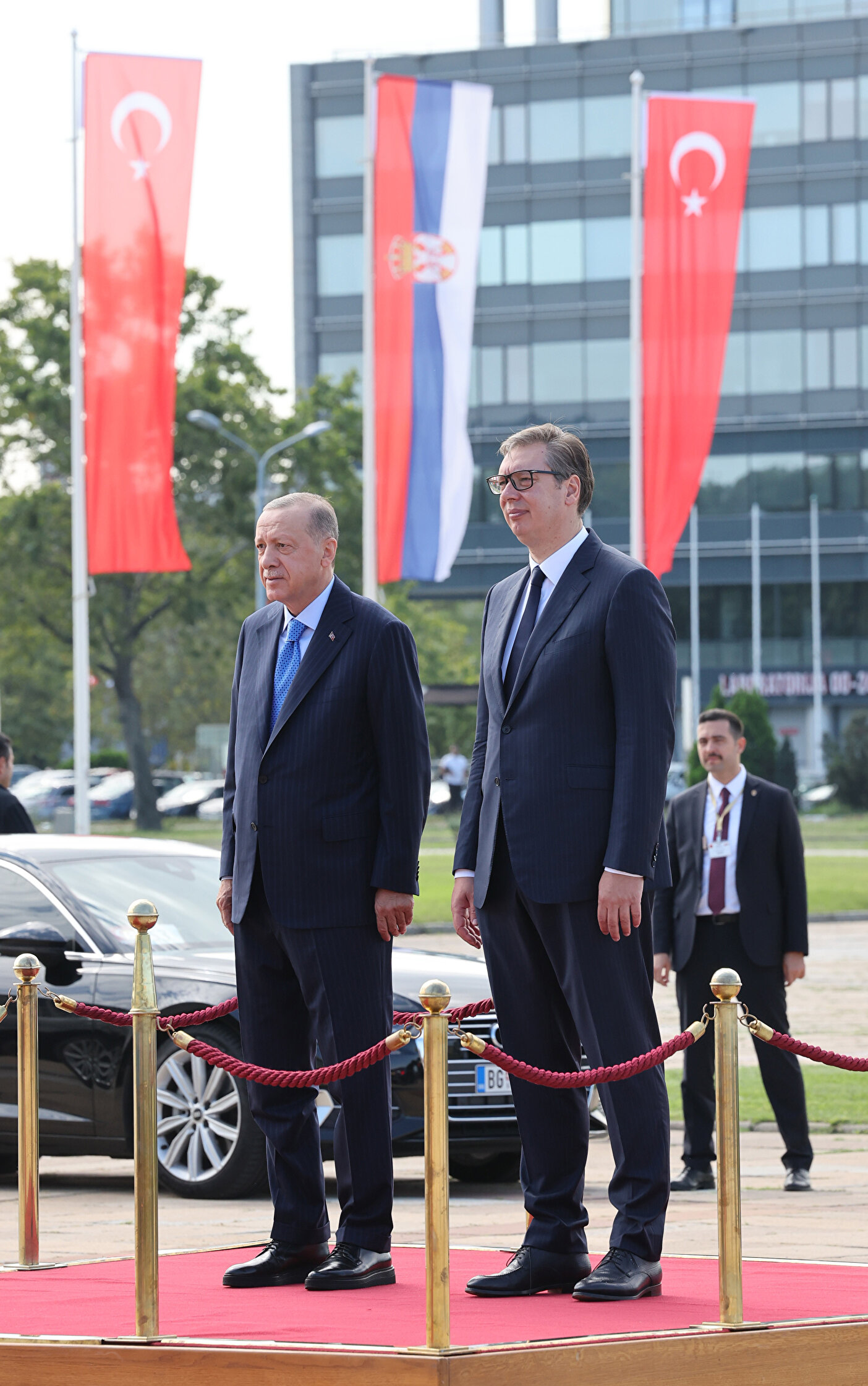 Cumhurbaşkanı Recep Tayyip Erdoğan, Bosna Hersek'in ardından Balkan turunun ikinci durağı olan Sırbistan'a geldi. Erdoğan, dün Nikola Tesla Havalimanı'nda Sırbistan Cumhurbaşkanı Aleksandar Vuçiç tarafından karşılandı. Bugün ise Cumhurbaşkanlığı Sarayında resmi karşılama gerçekleştirildi.