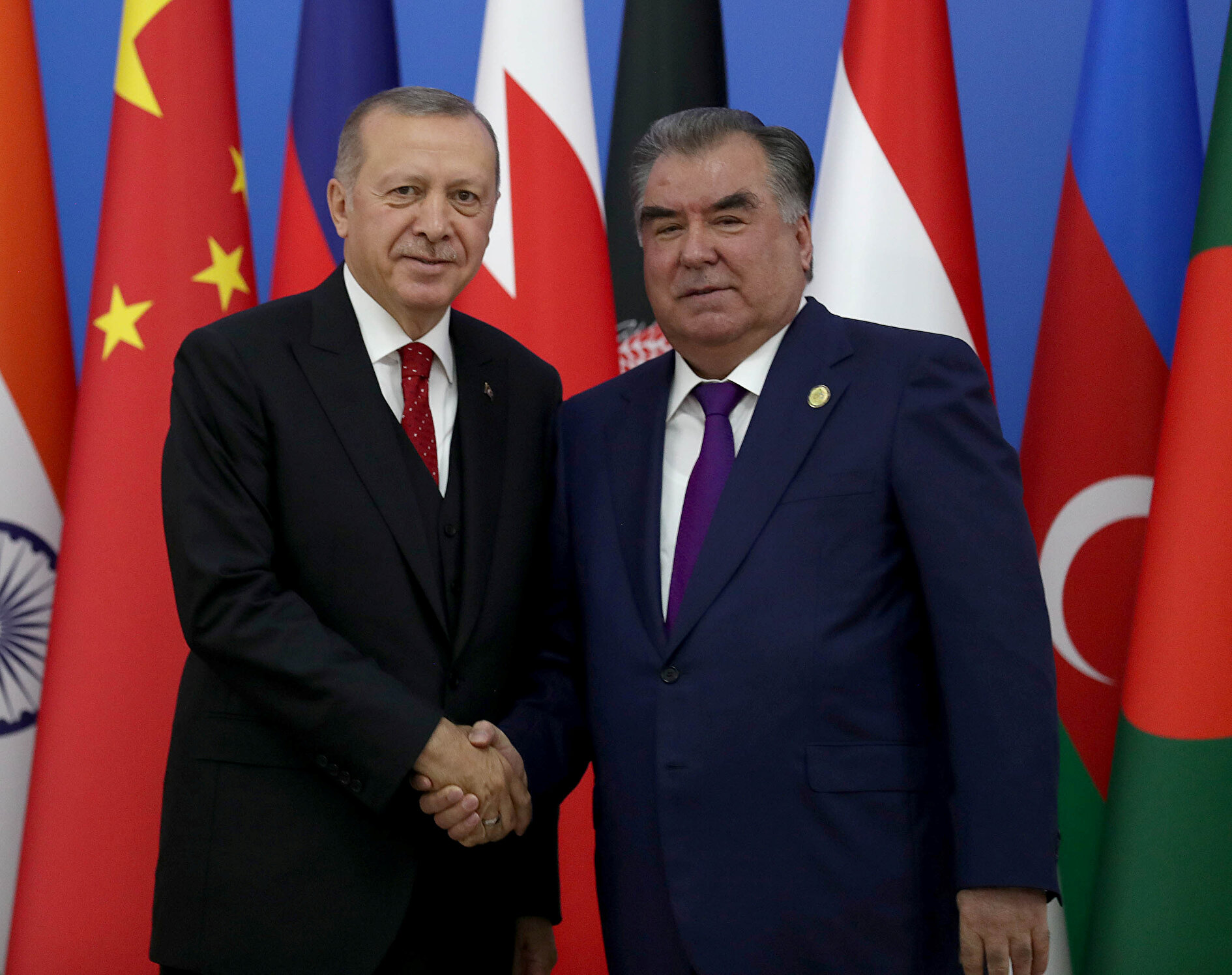 - Cumhurbaşkanı Erdoğan, zirveden önce Tacikistan Cumhurbaşkanı İmamali Rahman ile Cumhurbaşkanlığı Sarayı'nda bir araya geldi. Görüşme yaklaşık yarım saat sürdü.