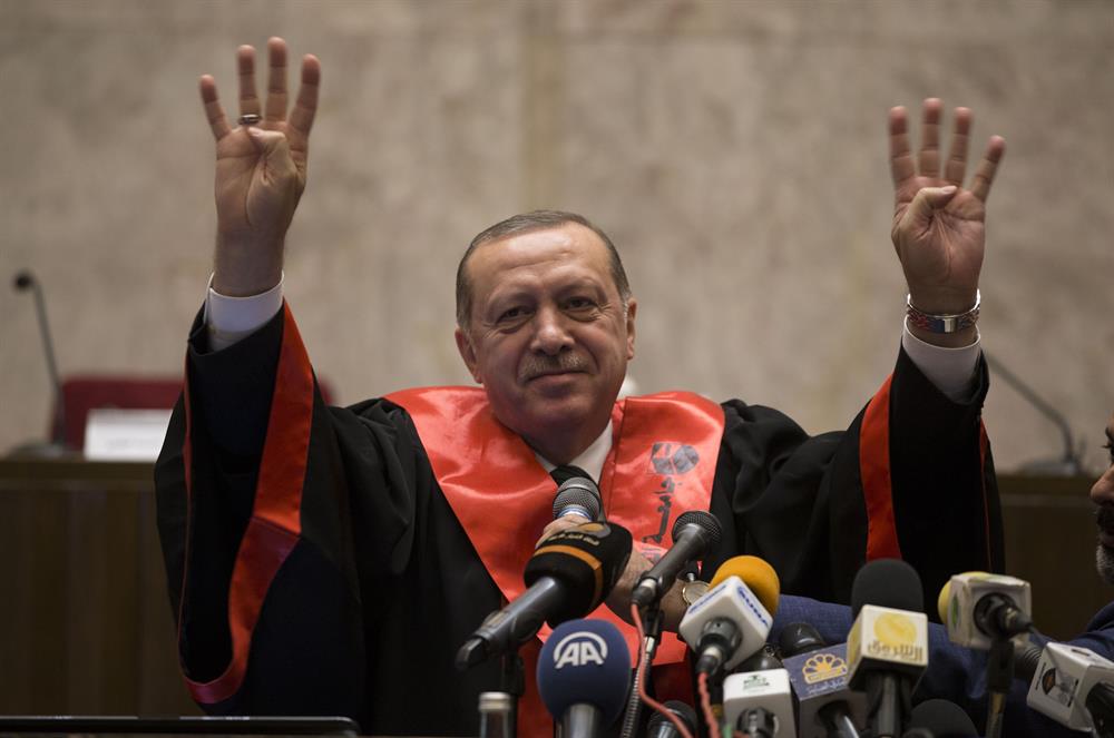 - Aynı zamanda Hartum Üniversitesi de, ülkesinin ilham verici kalkınma modeline liderlik yapması yönündeki yapıcı gayretlerinin yanı sıra Sudan yönetimi ve sivil toplumu ile eğitim, sağlık, insani ve kalkınma yardımları alanlarında ortaklıklar kurması ve dünyada hak ve adalet konularına yönelik bölgesel ve uluslararası ölçekte ekonomik yardımları nedeniyle Ekselansları Recep Tayyip Erdoğan'a Fahri Doktora vermiştir.