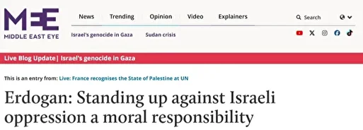 MIDDLE EAST EYE: ERDOĞAN, İSRAİL'İN POLİTİKALARINI ELEŞTİRDİ