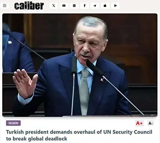 Caliber.az, Cumhurbaşkanı Recep Tayyip Erdoğan’ın Birleşmiş Milletler Güvenlik Konseyi’nin yeniden yapılandırılması gerektiğine yönelik çıkışını öne çıkardı. Haberde, Erdoğan’ın Newsweek için kaleme aldığı yazıda, BM’nin günümüzün küresel krizlerine karşı yetersiz kaldığını vurguladığı aktarıldı.