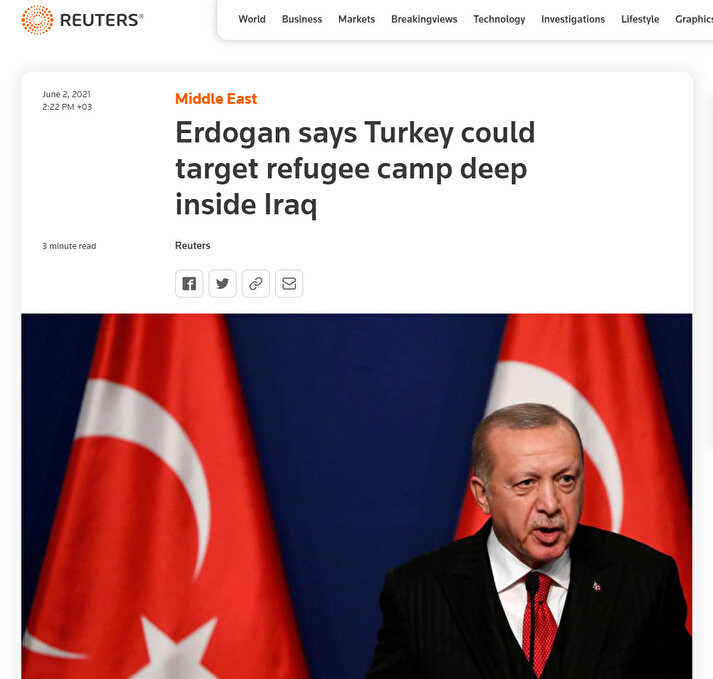 "Erdoğan, Türkiye'nin Irak'ın derinliklerindeki mülteci kampını hedef alabileceğini söyledi"