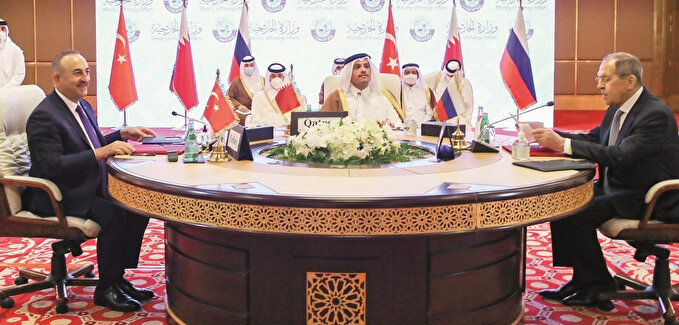 Dışişleri Bakanı Mevlüt Çavuşoğlu - Katar Dışişleri Bakanı Muhammed bin Abdurrahman Al Sani - Rusya Dışişleri Bakanı Sergey Lavrov