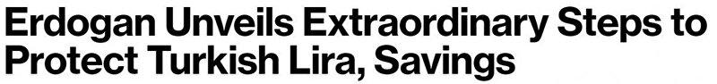 Bloomberg, Cumhurbaşkanı Erdoğan'ın, TL'yi korumak için olağanüstü tedbirler açıkladığını yazdı.