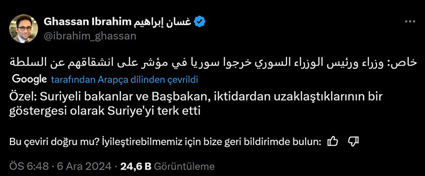 Esed'in Şam'dan ayrıldığı haberini duyuran Gazeteci Ghassan Ibrahim,