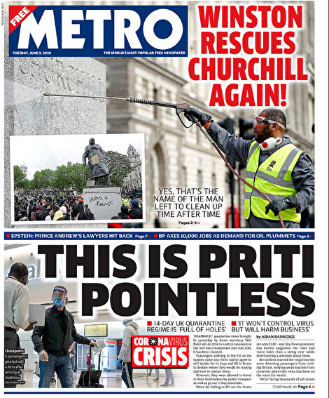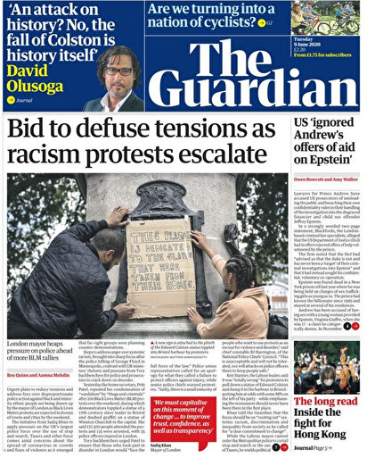 İngiltere'deki George Floyd gösterilerini manşete alan gazetede Londra Belediye Başkanı'nın, haftasonu İngiltere'nin çeşitli yerlerinde düzenlenmesi beklenen protestolara karşı, polis üzerinde baskı kurduğu belirtildi. ingiltere'de ayrıca George Floyd protestolarına karşı, aşırı sağcı grupların bir araya gelerek gösteri düzenlemesi bekleniyor. Kalabalık grupların bir araya geldiği ülkede koornavirüs endişesi ise sürüyor.
