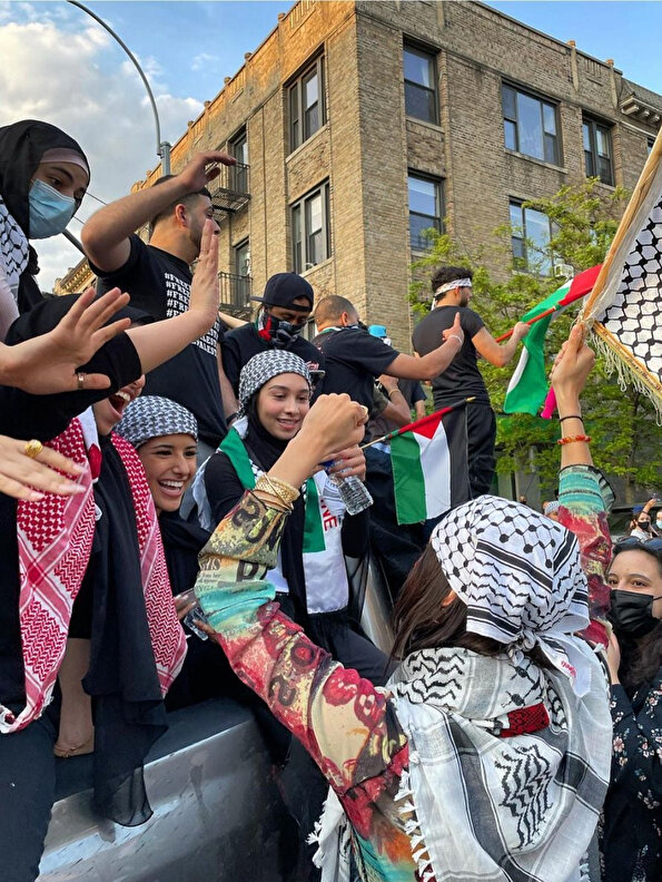 Protesto anında çekilen fotoğraflarını da Instagram hesabından paylaşan Hadid, “Kalbimin hissetme şekli bu. Bu kadar güzel, zeki, saygılı, sevgi dolu, nazik ve cömert Filistinlinin etrafında olmak... Bütün hissettiriyor! Biz ender bir cinsiz! Filistin özgür kalana kadar Özgür Filistin.” mesajını yayınladı.
