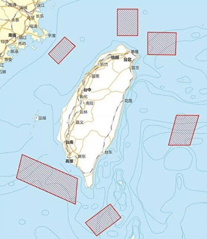 Komünist Parti güdümündeki Çin medyası tarafından yayınlanan tatbikat haritasında adanın tam anlamıyla çevrelendiği görülüyor.