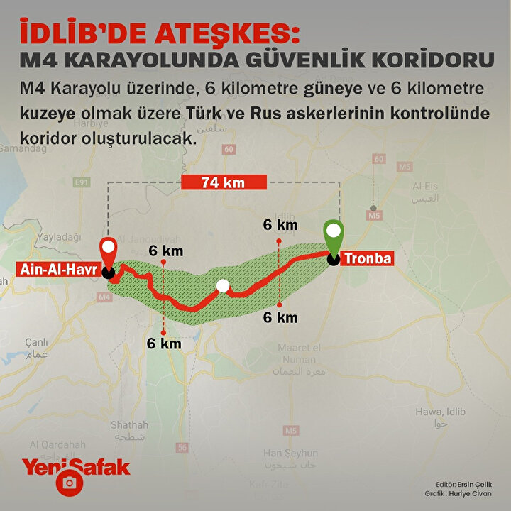 - Türk-Rus ortak devriyeleri, 15 Mart 2020 tarihinde M4 karayolunun Trumba’dan (Serakib’in 2 km batısı) Ain-Al-Havr’a kadar olan kesimi boyunca başlatılacak.