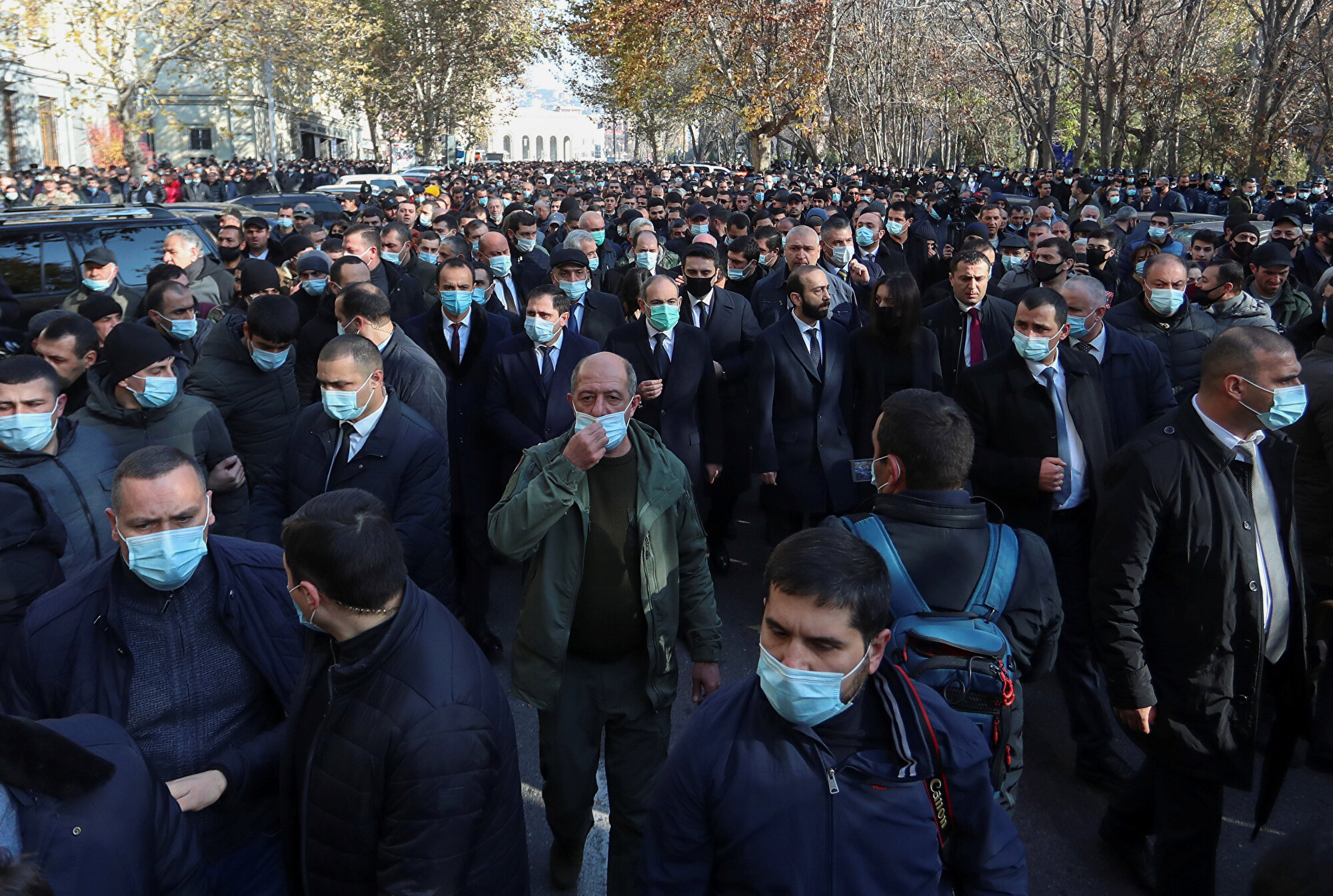 Erivan'da dün Dağlık Karabağ savaşında ölen askerler için anöa töreni düzenlendi.Bu sırada yürüyüş sırasında bir grup muhalif, "Hain Nikol" diye bağırarak, Başbakan'a yumurta fırlatmak istedi. Uzun zamandır düzenlenen protestolarla istifası istenen Paşinyan'ın halkın arasına katıldığı törende geniş güvenlik önlemleri alındı. Paşinyan'ın neredeyse bütün korumalarnın şemsiye içinde silah taşıdığı görüldü.