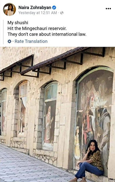 Ermeni siyasetçi Naira Zohrabyan, sosyal medya hesabından yaptığı paylaşımda, Azerbaycan'daki Mingeçevir Barajı'nın vurulmasını teklif etti.