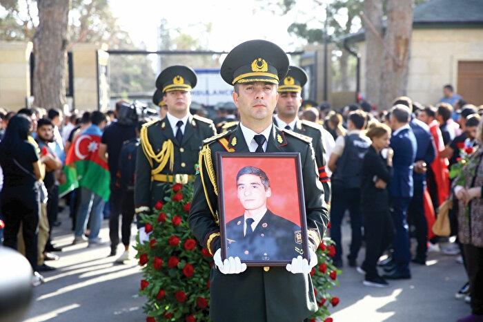 Ermenistan’ın provokasyonları sonucu sınırda çıkan çatışmalarda şehit olan Azerbaycan askerleri son yolculuklarına uğurlanıyor. Çatışmada şehit düşen Astsubay Sebuhi Ahmedov da Bakü’deki şehitlikte defnedildi. Ailesi olmadığı ve yetimhanede büyüdüğü öğrenilen Ahmedov’un cenaze törenine çok sayıda vatandaş katıldı.